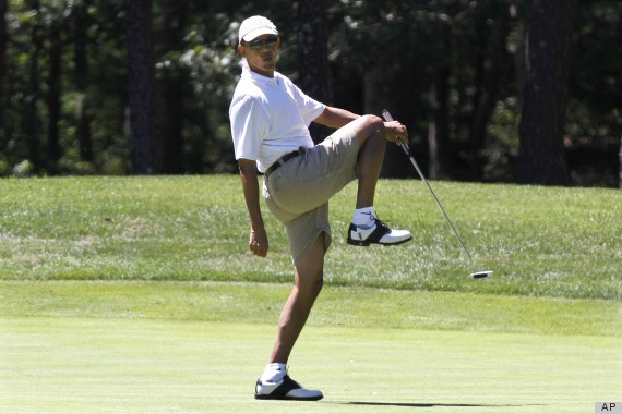 | Nét mặt của ông Obama sau cú đánh golf. |