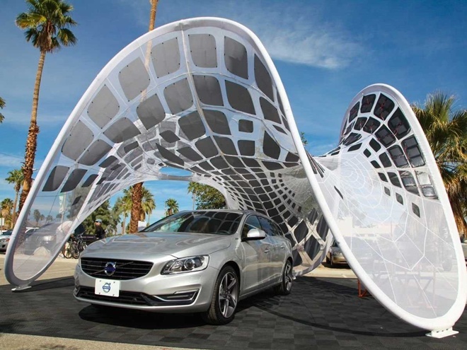 Pure Tension được thiết kế với cấu trúc “màng” nhẹ và dùng như một trạm sạc di động. Thiết kế này có thể sạc đầy một chiếc xe điện Volvo V60 trong 12 giờ.