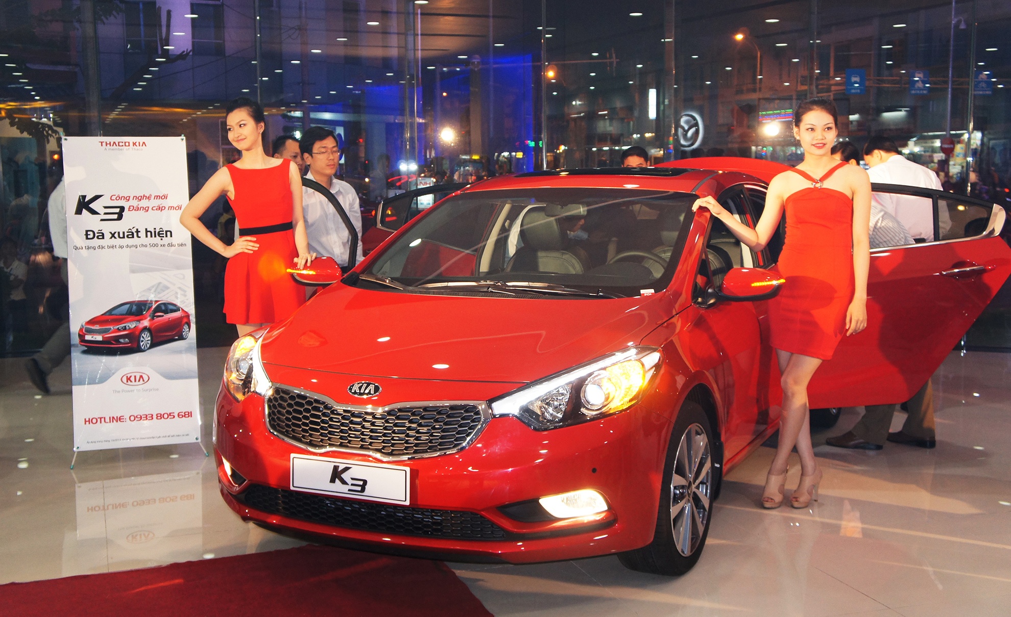 Thaco Kia trình làng mẫu xe Kia K3 hồi tháng 10/2013. Giá bán lần lượt là 638, 688, 749 và 770 triệu đồng tương ứng với các phiên bản 1.6G MT, 1.6G AT, 2.0G AT và 1.6G AT 5 cửa.