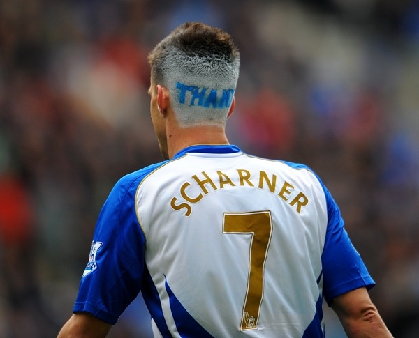 | Với mẫu tóc lạ lùng này, không ít người nghĩ cầu thủ đa năng Paul Scharner của Wigan có lẽ đã dựa phải đâu đó khiến mái tóc của anh bị lấm bẩn. |