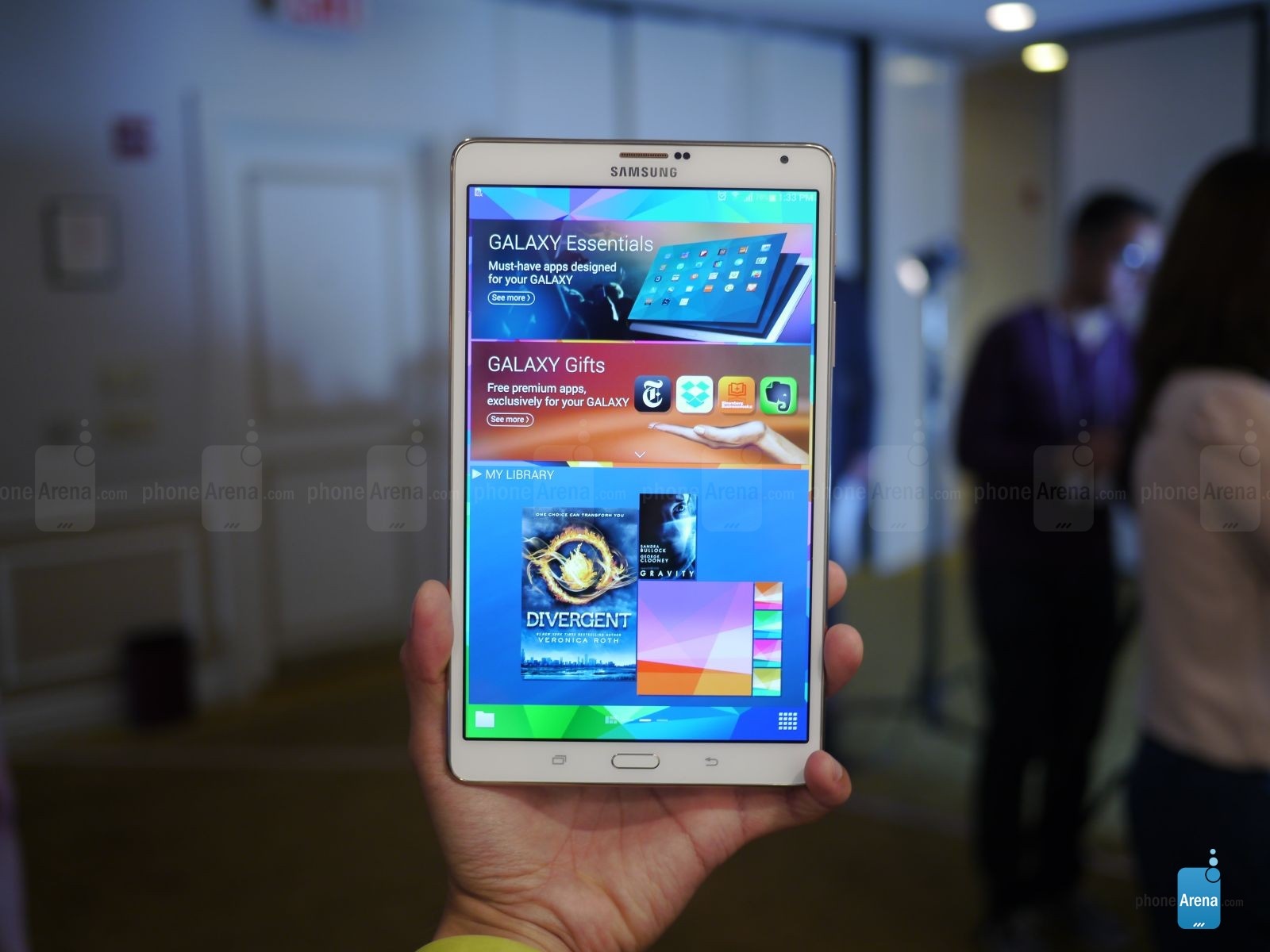 6. Samsung Galaxy Tab Pro 8.4 (7,2mm) Sản phẩm này có độ mỏng tương đương iPad mini nhưng dùng vỏ nhựa. Tab Pro có mật độ điểm ảnh cực ấn tượng, lên đến 359 ppi. Ngoài ra, giao diện Magazine UI của máy cũng rất mới lạ trong giới máy tính bảng. |