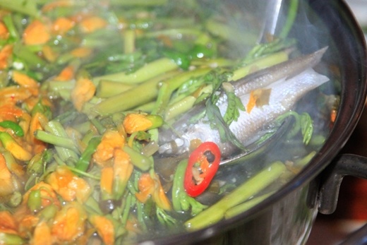 | Lẩu cá linh bông điên điển: Tuy chỉ là một món ăn hương đồng gió nội, nhưng lẩu cá linh bông điên điển chinh phục người ăn ngay từ màu sắc, hương thơm thoang thoảng cùng vị chua thanh của nước dùng. Bên cạnh đó là thịt cá béo ngọt ăn kèm nước mắm nguyên chất, càng làm cho món lẩu này trở nên đậm đà. |