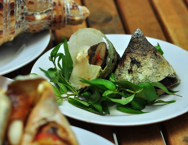 Ốc vú nàng có hình chóp nhọn thẳng, với thịt bên trong ốc trắng nõn và đầy đặn vô cùng ngon mắt. Ảnh: Hoàng Nhi. |