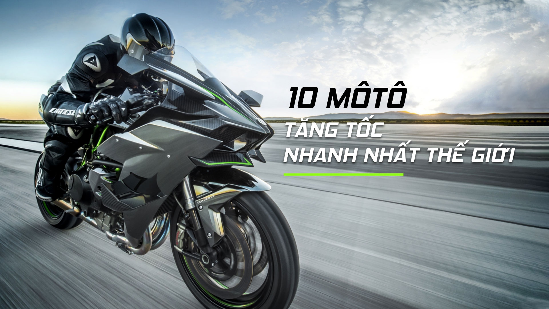 5. Kawasaki Ninja H2 2015: 2,6 giâyVào năm 2016, tay đua 5 lần vô địch giải Supersport, Jenan Sofuoglu, đã đưa chiếc Ninja H2 đạt được vận tốc 400 km/h chỉ trong 26 giây. Bên cạnh Ninja H2, Kawasaki còn sản xuất một phiên bản dành riêng cho trường đua với tên gọi Ninja H2R, mẫu xe này được xem là mẫu môtô nhanh nhất hành tinh.