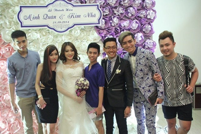 | Thành viên nhóm hài BB&BG đến chúc mừng ngày vui của Kim Nhã và Minh Quân. |