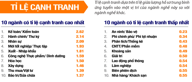 Mức độ cạnh tranh được tính toán dựa trên tỷ lệ giữa lượng hồ sơ trung bình ứng tuyển vào một vị trí của ngành nghề này so với ngành nghề khác.