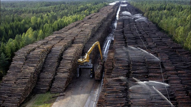 Nghĩa địa gỗ tại Byholma, Thụy Điển. Cơn bão Gudrun đổ bộ năm 2005, quật ngã rất nhiều cây cối. Người ta gom chúng lại và tạo ra khu bãi chứa khoảng một triệu m3.