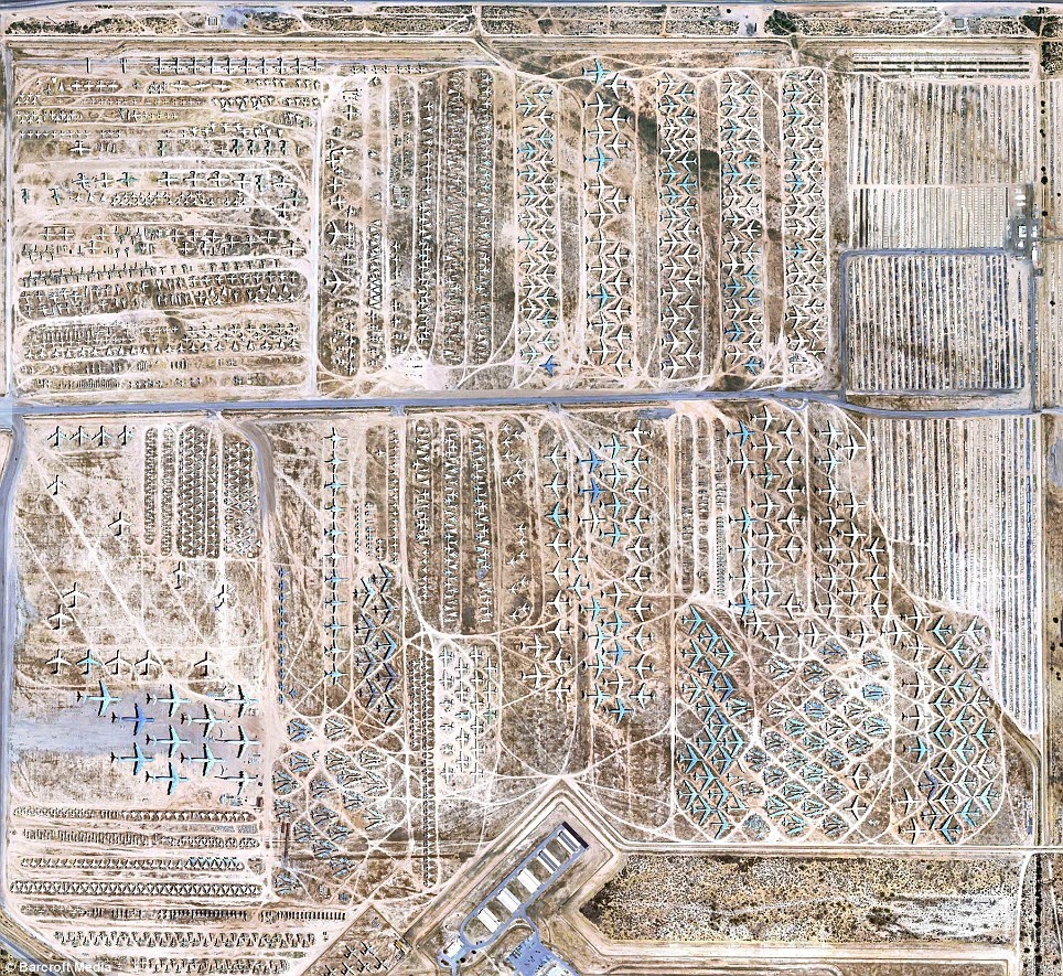 Nhiều máy bay chiến đấu từng đóng vai trò quan trọng trong Không quân Mỹ nằm phơi xác ở nghĩa địa phi cơ quân sự tại Tuscon, Arizona. Địa hình khô cằn giúp bảo vệ những “con chim sắt” khỏi sự tàn phá của thiên nhiên. Chúng sẽ bị tháo dỡ để lấy phụ tùng và phế liệu. Một vài chiếc được sửa chữa và hoạt động trở lại.