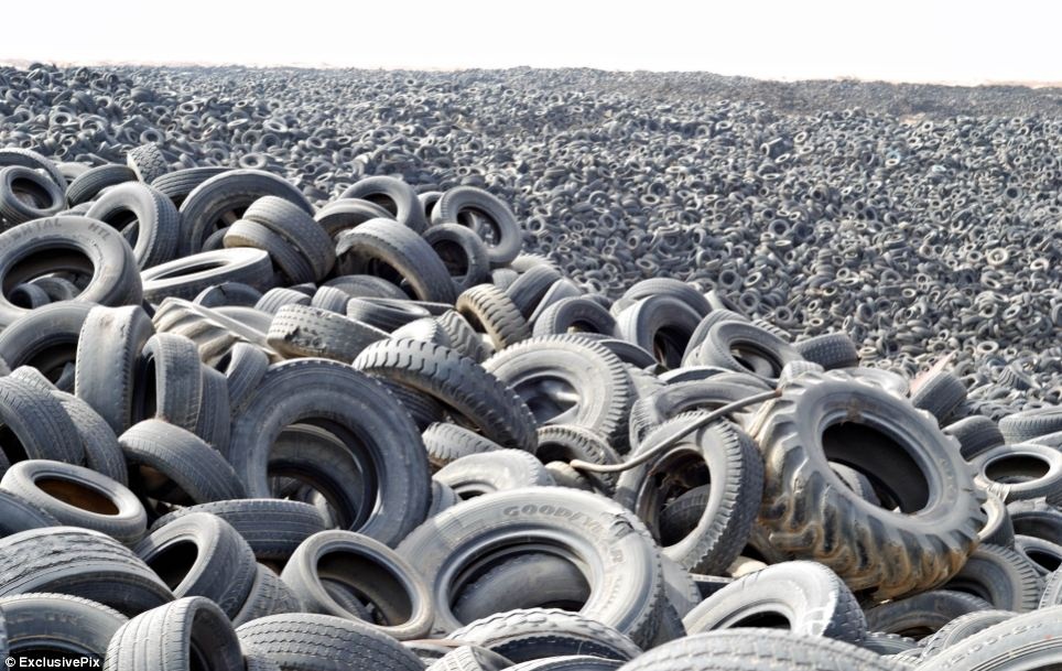 Nghĩa địa lốp xe lớn nhất thế giới ở Kuwait. Người ta ước tính khoảng 7 triệu lốp đã qua sử dụng nằm ngổn ngang ở đây. Kích thước khổng lồ khiến khu vực này được nhìn thấy từ bên ngoài vũ trụ. Nỗ lực xử lý hoặc tái chế chúng không đuổi kịp tốc độ rác được đưa tới.