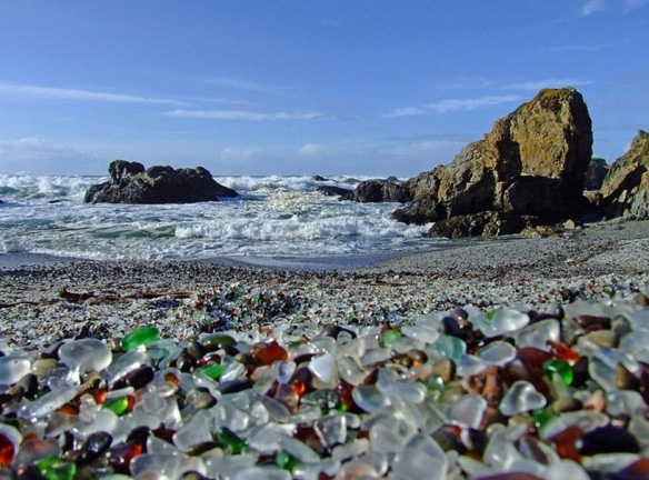 Bãi thủy tinh ở Bragg, California, Mỹ được công nhận là lớn nhất thế giới. Trong quá khứ, người ta ném cốc hoặc chai thủy tinh vỡ ra đây cùng rác thải và dùng lửa để đốt chúng. Năm 1967, giới chức Mỹ đóng cửa khu vực và phát động chiến dịch dọn dẹp bãi rác để trả lại môi trường. Những gì còn lại là mảnh thủy tinh nhiều màu sắc bị sóng biển mài nhẵn.