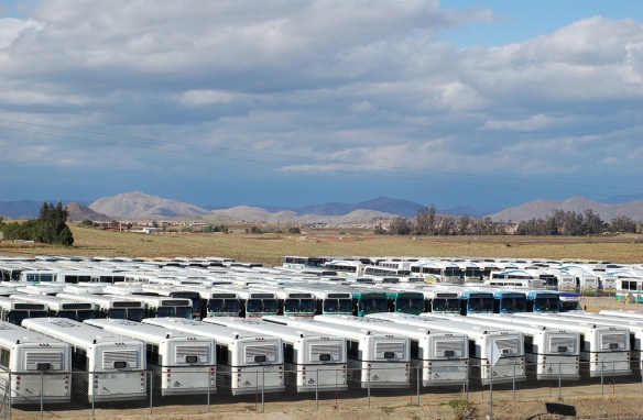 | 252 chiếc xe buýt lớn tạo thành bãi rác nổi tiếng ở Murrieta, California. |