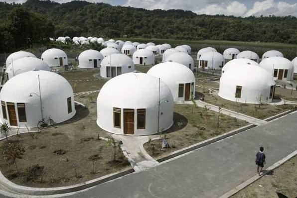 | 70 ngôi nhà mái vòm này được xây dựng cho dân làng bị mất nhà cửa sau một trận động đất ở thành phố cổ Yogyakarta của Indonesia. Các mái vòm được làm bằng đá nguyên khối và có thể chịu được động đất và gió lên đến 190 mph.