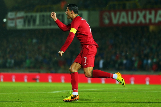 Vị trí thi đấu: Tiền đạo cánh. Điểm: 90,3. Xuất thân là một tiền vệ cánh, nhưng Ronaldo hiện thi đấu chẳng khác nào một tiền đạo. Những pha đi bóng tốc độ, kỹ thuật cùng khả năng dứt điểm toàn diện của CR7 giúp anh vượt qua huyền thoại Eusebio để trở thành chân sút xuất sắc nhất mọi thời đại của đội tuyển Bồ Đào Nha với 43 bàn thắng (hơn Eusebio 2 bàn). Tuy nhiên, 4 bàn thắng của CR7 tại vòng loại chưa đủ để giúp Bồ Đào Nha vượt mặt tuyển Nga để giành chiếc vé trực tiếp tới Brazil. |
