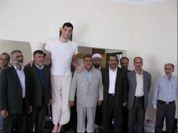 Sultan Kösen, người đàn ông cao nhất thế giới hiện tại, sinh năm 1982 ở Mardin, Thổ Nhĩ Kỳ. Anh cao 2,51 m. Một khối u ức chế tuyến yên khiến chiều cao của Kösen phát triển không ngừng. |