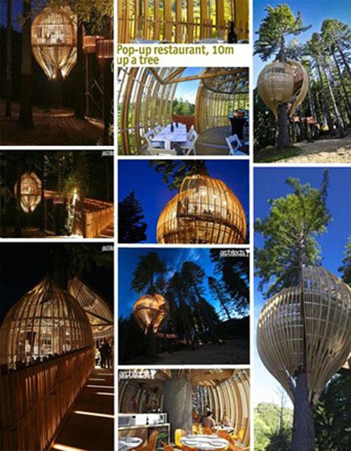 Nhà hàng Yellow Treehouse hay còn có tên khác Redwoods Treehouse, là một công trình có hình dạng cái kén được "xây dựng" trên thân một cây lớn trong khu rừng gần Warkworth, phía bắc Auckland,New Zealand. Để vào được nhà hàng, khách hàng phải leo cầu thang bộ được làm từ gỗ đỏ. Nhà hàng có thể phục vụ cùng lúc 30 khách, ngồi bàn hoặc đứng, tiện cho các bữa tiệc cá nhân.
