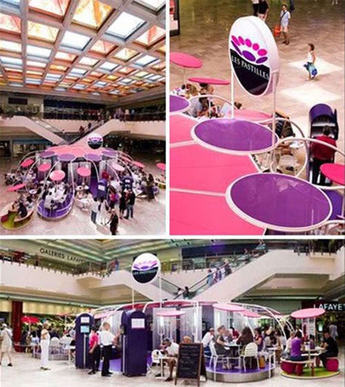 Ở một quốc gia có thể tìm thấy các quán cà phê ở bất cứ đâu, thì việc xây dựng một nhà hàng kiểu như Les Pastilles ở trung tâm thương mại Cap 3000 ở St Laurent du Var của nhà thiết kế Matali Crasset quả là một quyết định táo bạo. Nhà hàng này có thiết kế như một hòn đảo và có một vài không gian nho nhỏ lại có sức hấp dẫn đặc biệt với khách hàng.