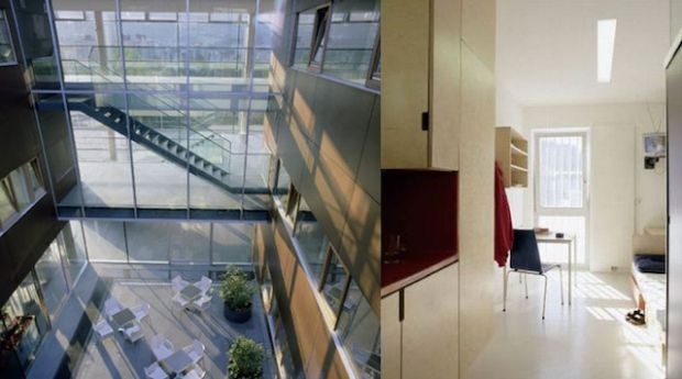 Mỗi tù nhân được ở trong một phòng riêng biệt tại Trung tâm Cải tạo Leoben, Áo. Mỗi căn phòng có diện tích khá lớn, với phòng tắm riêng, bếp nhỏ và một chiếc ti vi. Tại khu vực sinh hoạt chung, các phạm nhân có thể tập tạ, chơi bóng rổ hoặc giải trí ngoài trời. Ảnh: TakePart |