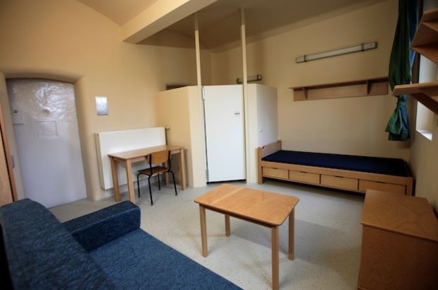 Nhà tù Sollentuna, Thụy Điển có những phòng giam rộng với nhà tắm riêng. Sau khi tù nhân hoàn thành nghĩa vụ chung, họ có thể nấu ăn trong phòng, xem truyền hình hoặc làm việc cá nhân. Tuy nhiên, hệ thống máy quay giám sát có thể theo dõi từng cm2 trong mỗi buồng giam. Ảnh: TakePart |