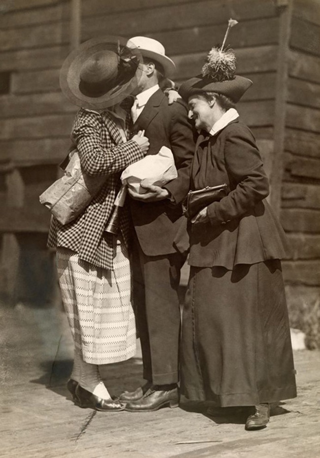 | Bức ảnh chụp một quân nhân mới nhập ngũ trong Thế chiến thứ nhất đang hôn tạm biệt gia đình của anh. Bức ảnh được đăng trên tạp chí National Geographic tháng 11/1917 với chú thích: “Chia tay với người thân luôn là nhiệm vụ khó khăn nhất của một người lính”. Ảnh: Paul Thompson |