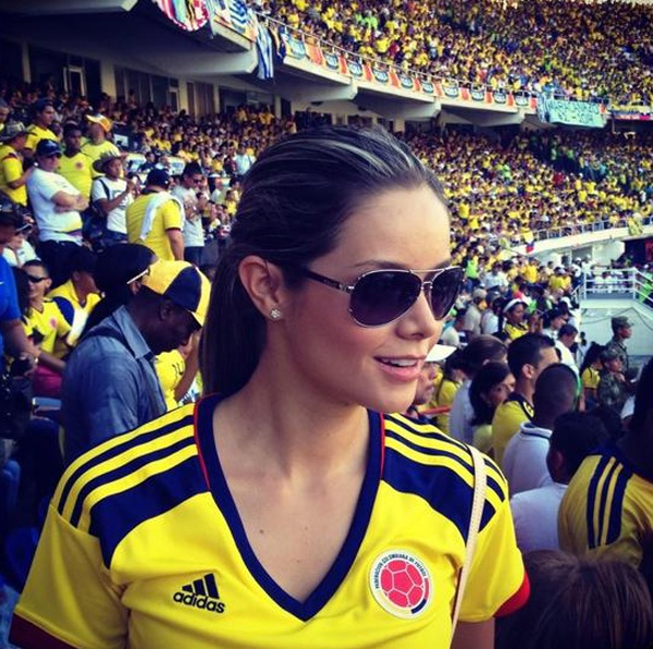 | Lần đầu xuất hiện trên sân cỏ World Cup, nữ phóng viên Alejandra Buitrago đến từ Colombia đã tạo nên một cơn sốt. Gương mặt đẹp hoàn mỹ, thân hình bốc lửa, người đẹp kênh RCN (Colombia) thực sự mang một làn gió mới cho World Cup 2014. |