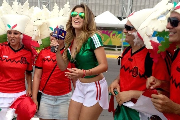 | Mariana Gonzalez, 27 tuổi, đang là phóng viên truyền hình của Mexico. Xuất hiện tại World Cup 2014, người đẹp cầm micro khiến tất thảy cổ động viên phải đứng ngồi không yên bởi sự nóng bỏng và quyến rũ trên mức bình thường. |