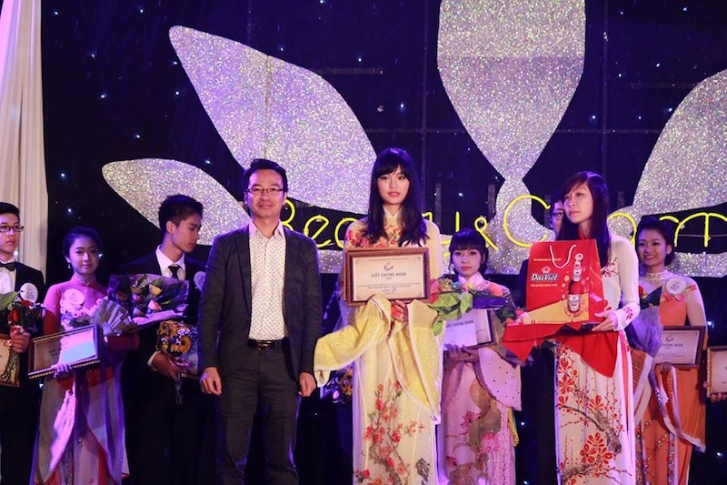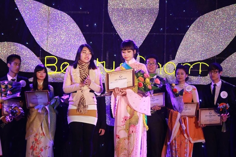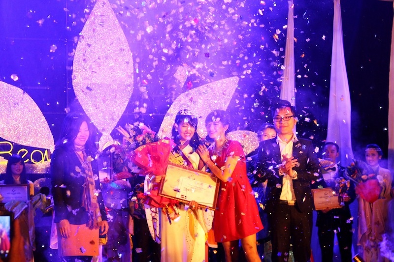 | Với phần trình diễn tự tin, ứng xử thông minh, Ngọ Hồng Vi đã đăng quang ngôi vị Hoa khôi đại học Ngoại thương 2013. |