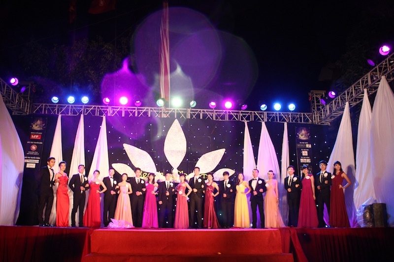 | Đêm chung kết Duyên dáng Ngoại thương 2013 vừa diễn cuối tuần qua trên nền nhiệt độ chỉ khoảng 10-11 độ. Trong ảnh là top 10 nữ sinh và nam sinh đại học Ngoại thương xuất sắc nhất được lọt vào vòng chung kết. |