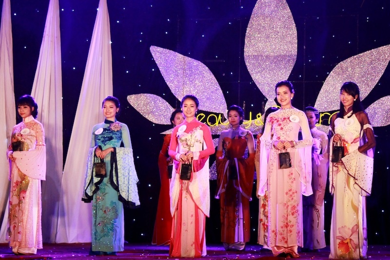 | Mở đầu là màn trình diễn áo dài ấn tượng đến từ các nữ sinh. |