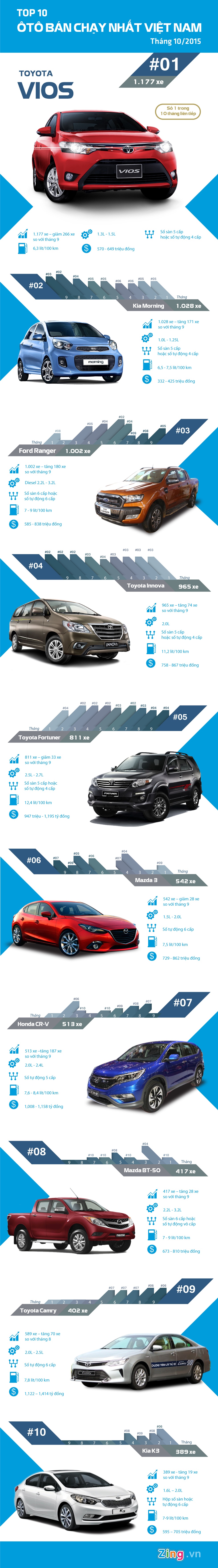 Toyota Vios vẫn duy trì vị thế dẫn đầu dù doanh số giảm đáng kể so với tháng 9, trong khi Kia Morning và Ford Ranger có màn bứt tốc ngoạn mục với hơn 1.000 xe bán ra mỗi dòng.