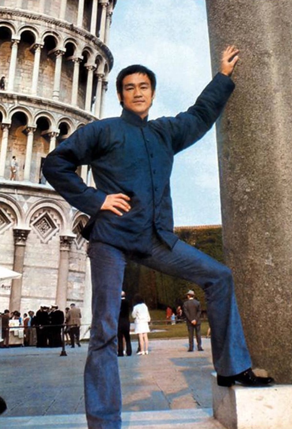 | Huyền thoại võ thuật chụp ảnh kỷ niệm bên tháp nghiêng ở Italia. Anh từng chia sẻ: "Tôi chưa bao giờ nói mình là số một, nhưng cũng không bao giờ thừa nhận mình là số hai". |