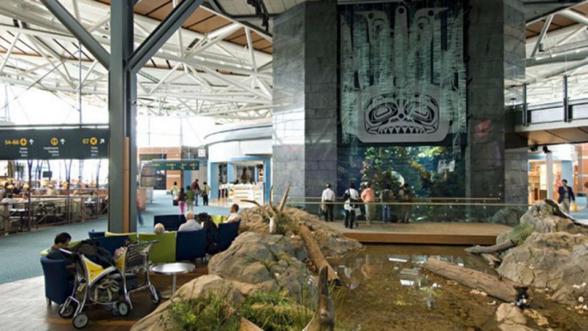 7. Sân bay quốc tế Vancouver, CanadaSân bay quốc tế Vancouver, Canada có một số điểm như là sân bay đông khách thứ 2 của Canada, sở hữu không phải một mà hai thủy cung cỡ lớn. Thủy cung chính là một chiếc bể 100m3 với hơn 5.000 sinh vật biển như cá chình, sao biển, hải quỳ và vô số loài san hô. Thủy cung thứ 2 nhỏ hơn có chứa 12 loại sứa biển Thái Bình Dương. Những thủy cung này được xây dựng năm 2007, nằm trên tầng 3 và tầng 4 của sân bay. |