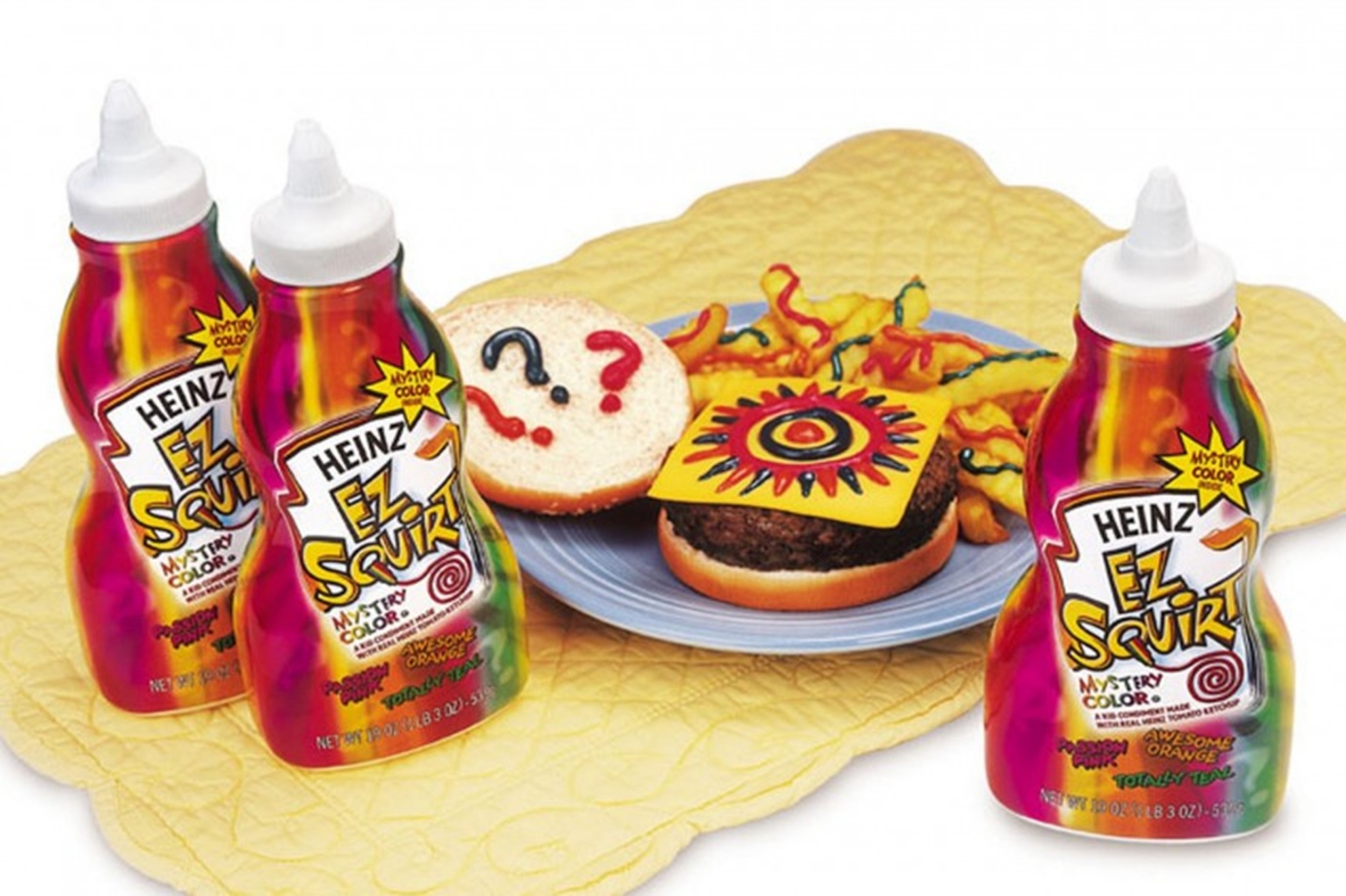 Loại sốt cà chua màu sắc sặc sỡ này được tung ra thị trường vào đầu những năm 2000. Sốt Heinz EZ Squirt Ketchup có màu sắc khá kỳ cục như tím hoặc xanh lá. Dù sản phẩm này có thể thu hút trẻ em nhưng lại không đủ hấp dẫn với số đông để thành công trên thị trường. Đây chính là ví dụ điển hình của việc cần phải nghiên cứu thị trường và thử sản phẩm đối với khách hàng trung bình.