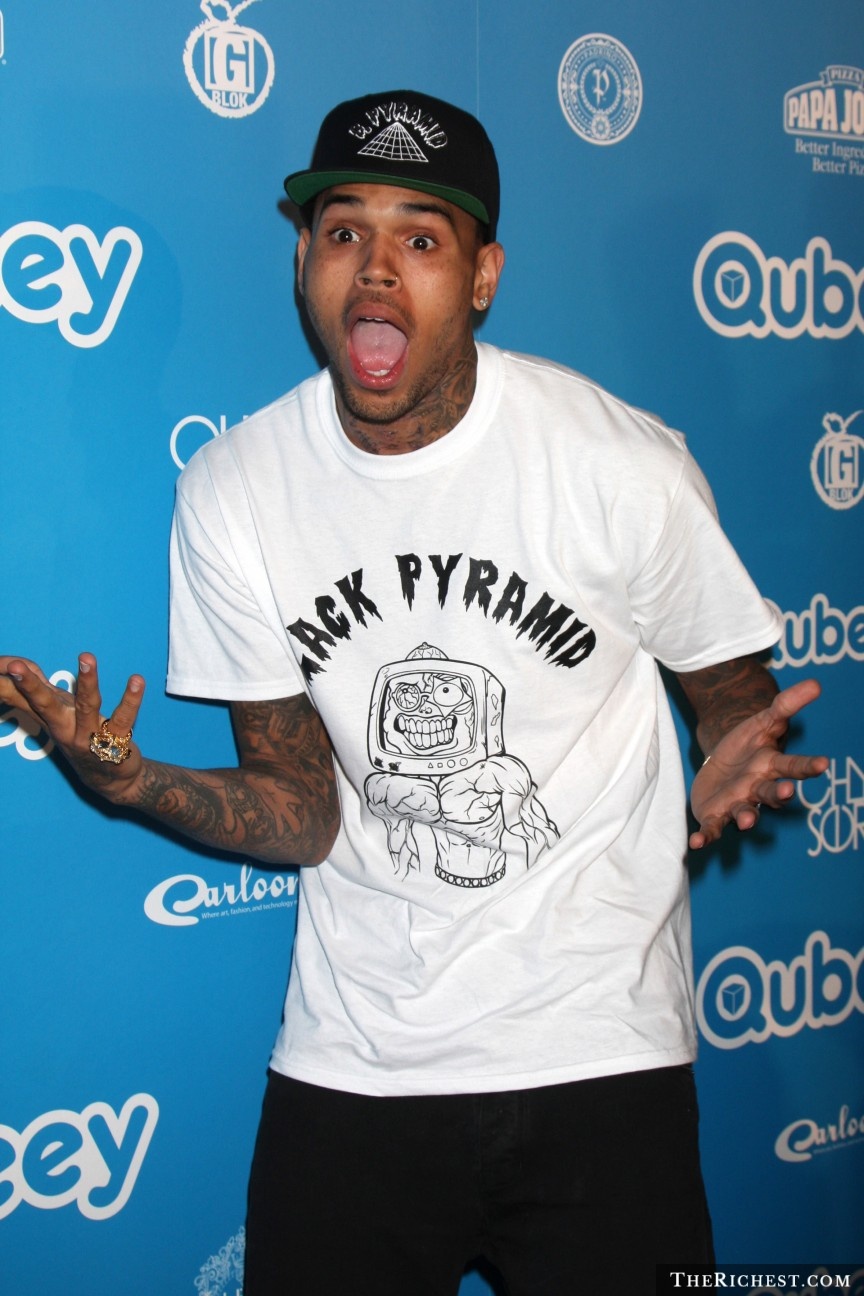 | Chris Brown nổi tiếng với thái độ bất cần dù đã 26 tuổi, từ chuyện đánh bạn gái cũ Rihanna đến phá hoại của công, ném ghế vỡ cửa sổ tại trường quay chương trình Good Morning America. |
