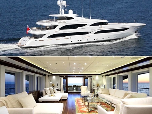 7. Du thuyền đơn giản nhất của tỷ phú Murdoch Tỷ phú Rupert Murdoch đã mua du thuyền này vào năm 2006. Hầu hết nội thất của nó được làm từ da sang trọng có màu sắc nhã nhặn, tinh tế, bàn ghế bằng gỗ cao cấp được thiết kế hoàn toàn bởi Christian Liaigre. Ngoài một dãy buồng ngủ hạng sang, du thuyền Murdoch được trang bị 2 phòng VIP giống nhau. Nó có sức chứa 12 khách và 10 thuỷ thủ. Vận tốc trung bình đạt được là 13 hải lý /giờ. |