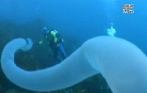 Hồi tháng 8, các thợ lặn chụp được hình ảnh của một sinh vật biển khổng lồ và kỳ lạ ngoài khơi bờ biển Tasmania, Australia. Theo các nhà khoa học, sinh vật cực kỳ hiếm gặp này là Pyrostremma spinosum (hay pyrosome), còn được gọi là "Kỳ lân biển". Chiều dài thân của chúng có thể lên tới 30 m, tương đương 2 chiếc xe bus hai tầng. Pyrosome có thân rỗng và trong suốt, cơ thể hình trụ được tạo thành từ hàng nghìn zooid - một loại sinh vật vô tính. Ảnh: Daily Mail