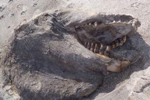 Người dân tại bờ biển Pukehina ở New Zealand tìm thấy xác một con vật thối rữa với răng và hàm có kích thước to dị thường hồi tháng 5. Hầu hết các bộ phận trên cơ thể con “quái vật biển” đã biến mất, còn trơ lại xương hàm và răng. Phần xác còn lại dài gần 10 m. Cái xác này được cho là dạt vào bờ trong cơn bão xảy ra ở khu vực này 1 tháng trước đó. Có nhiều dự đoán về con vật trên, có người cho rằng đó có thể là cá sấu nước mặn, con lươn khổng lồ, cá heo hoặc khủng long. Hình ảnh “quái vật” sau đó được gửi tới cơ quan bảo tồn New Zealand và phòng thủy sản Kelly Tarlton để xác minh.