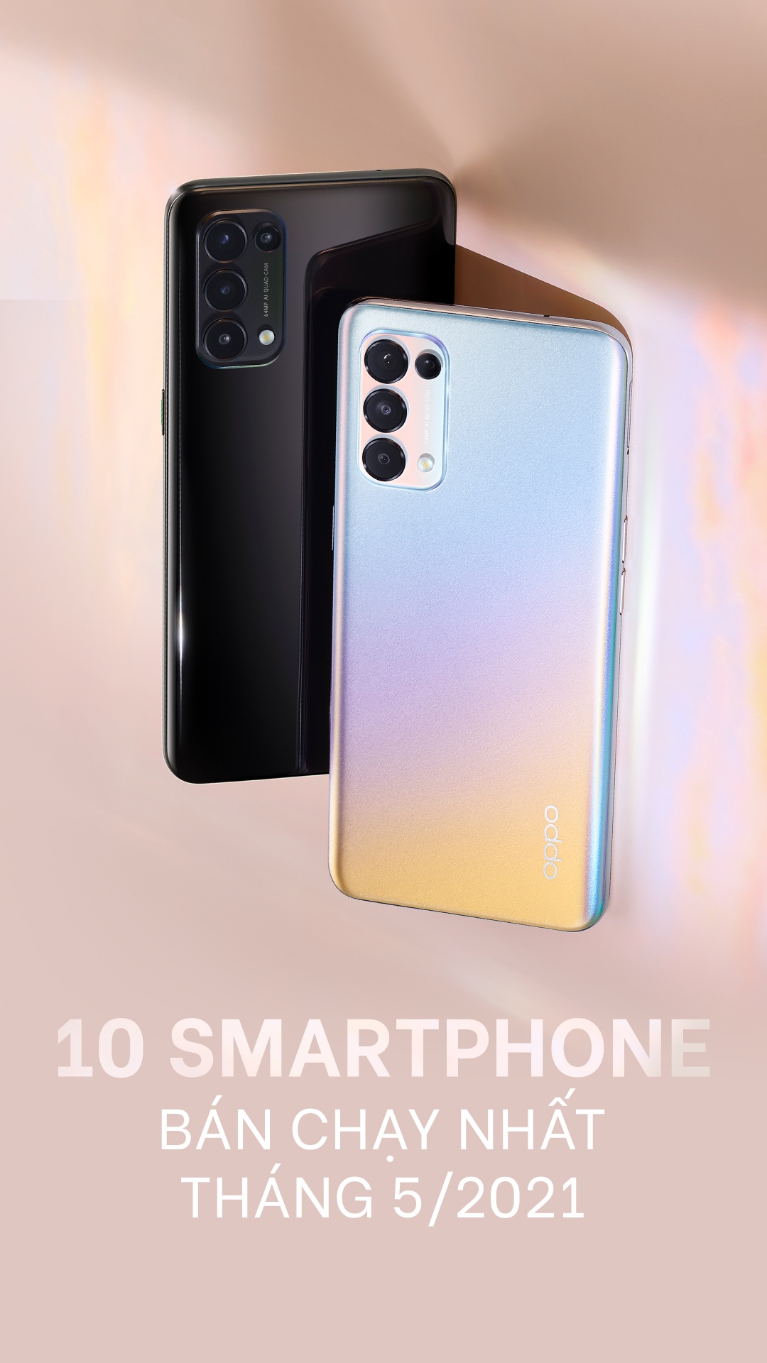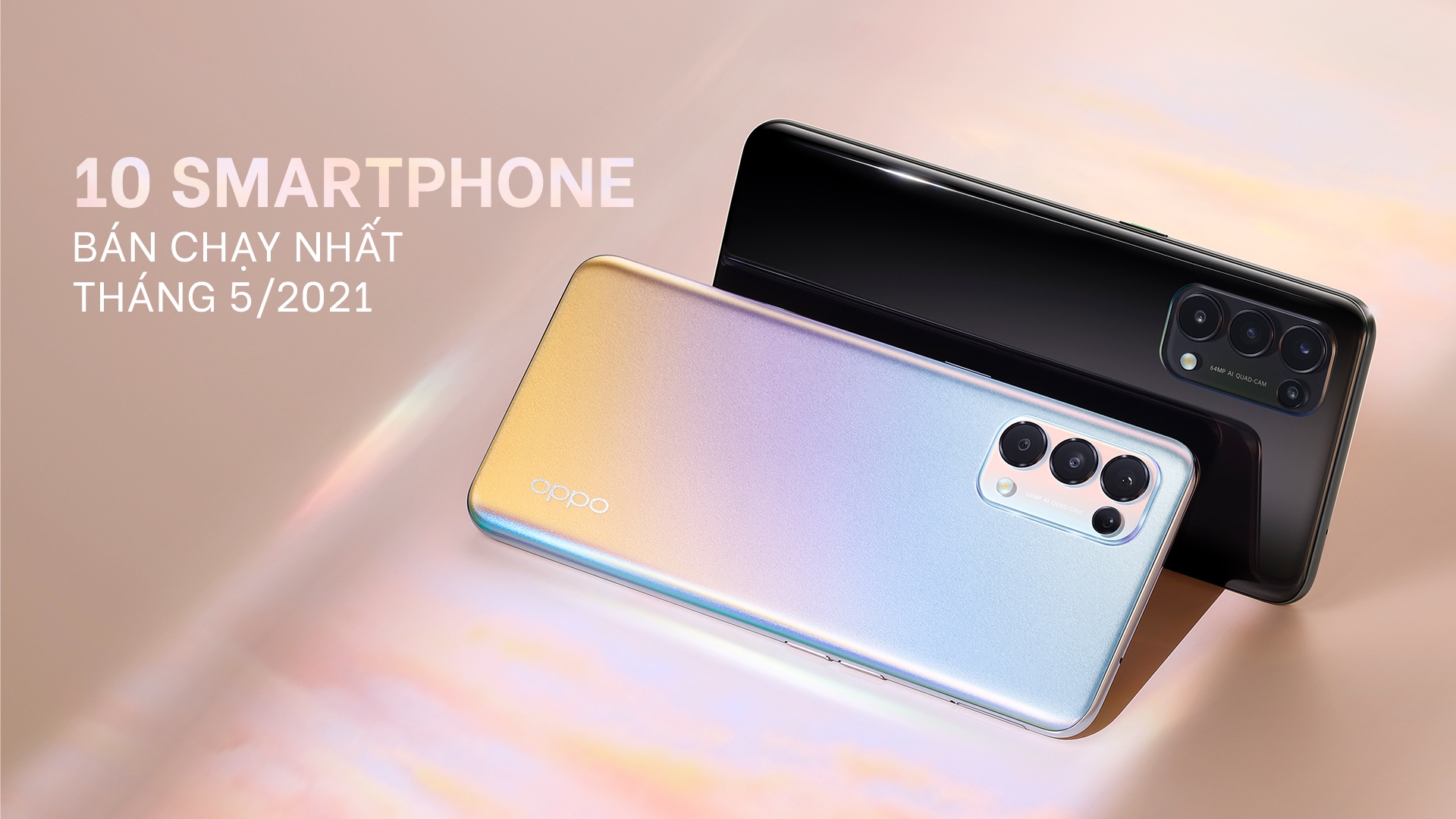 Oppo Reno5Đây là mẫu smartphone bán chạy nhất quý I/2021 tại thị trường Việt Nam. Hiện tại, máy vẫn có doanh số tốt tại nhiều nhà bán lẻ nhờ được điều chỉnh giá.