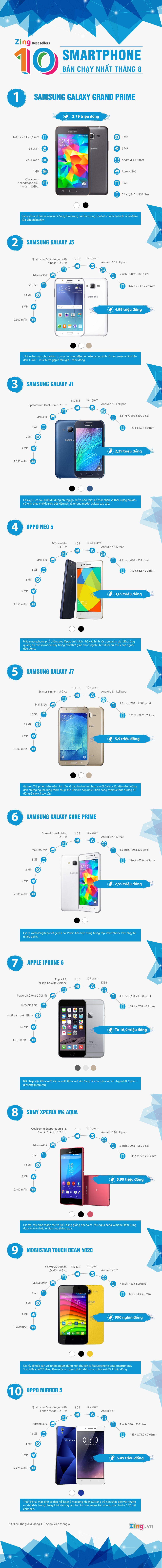 10 smartphone bán chạy nhất tháng 8 tại Việt Nam