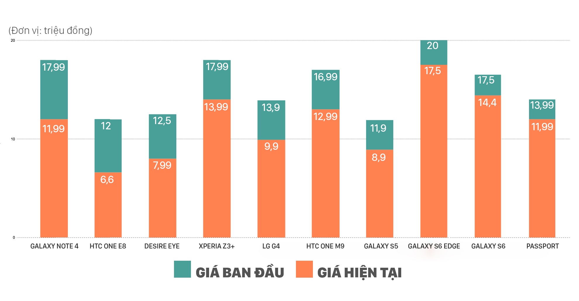 Galaxy Note 4, HTC One E8, HTC Desire Eye, Xperia Z3+ là những mẫu di động mất giá nhanh nhất trong năm qua, dù không phải là thiết bị tồi.