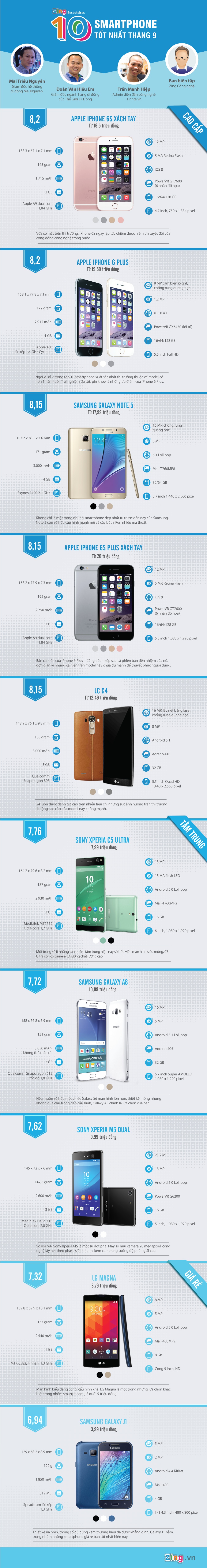 10 smartphone tốt nhất tháng 9 tại Việt Nam
