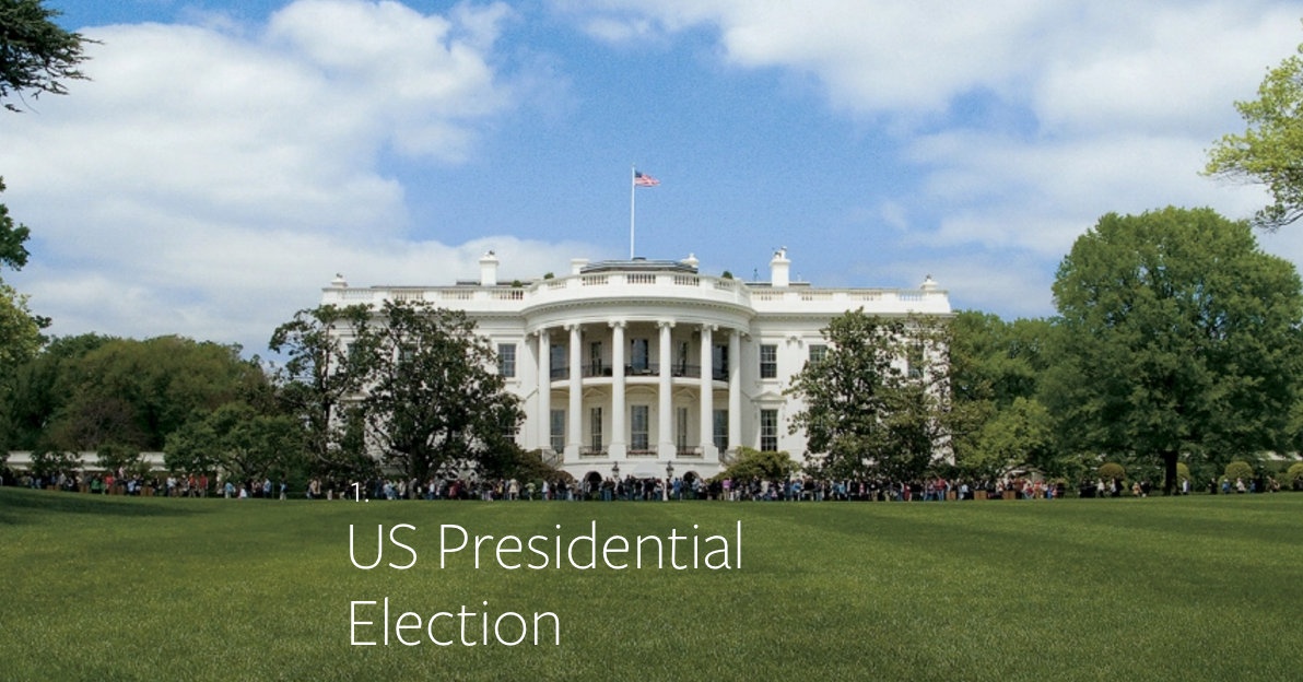 | Ngoài ra, Facebook cũng đưa ra danh sách 10 vấn đề được người dùng trên thế giới chia sẻ. Đứng đầu là cuộc bầu cử tổng thống Mỹ. |