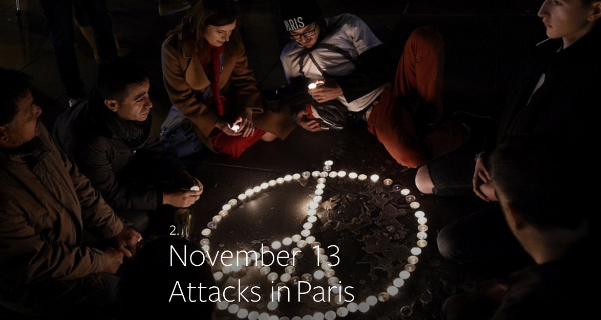 | Cuộc tấn công khủng bố tại Paris hôm 13/11 xếp ở vị trí thứ hai. |