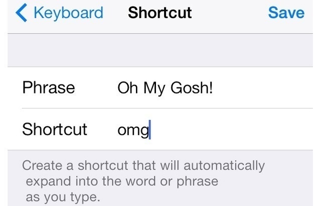 10. Tạo từ viết tắt. Bạn chọn Settings > General > Keyboard > Shortcuts > Add New Shortcut. Sau đó, chọn từ bạn hay sử dụng và từ viết tắt của nó. Bất cứ khi nào bạn viết tắt, từ đầy đủ của nó sẽ xuất hiện.