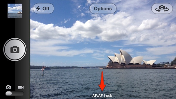 8. Khóa điểm lấy nét và phơi sáng bằng cách giữ ngón tay ở điểm đó cho đến khi hình vuông màu vàng của máy nháy lên 2 lần, đồng thời xuất hiện dòng chữ AE/AF Lock.