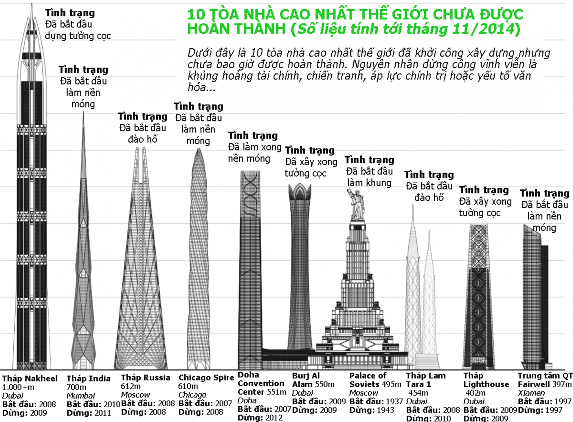 Vì các lý do tài chính, chiến tranh hay văn hóa, chính trị, các tòa nhà dưới đây chưa bao giờ được hoàn thành, theo thống kê của Business Insider.