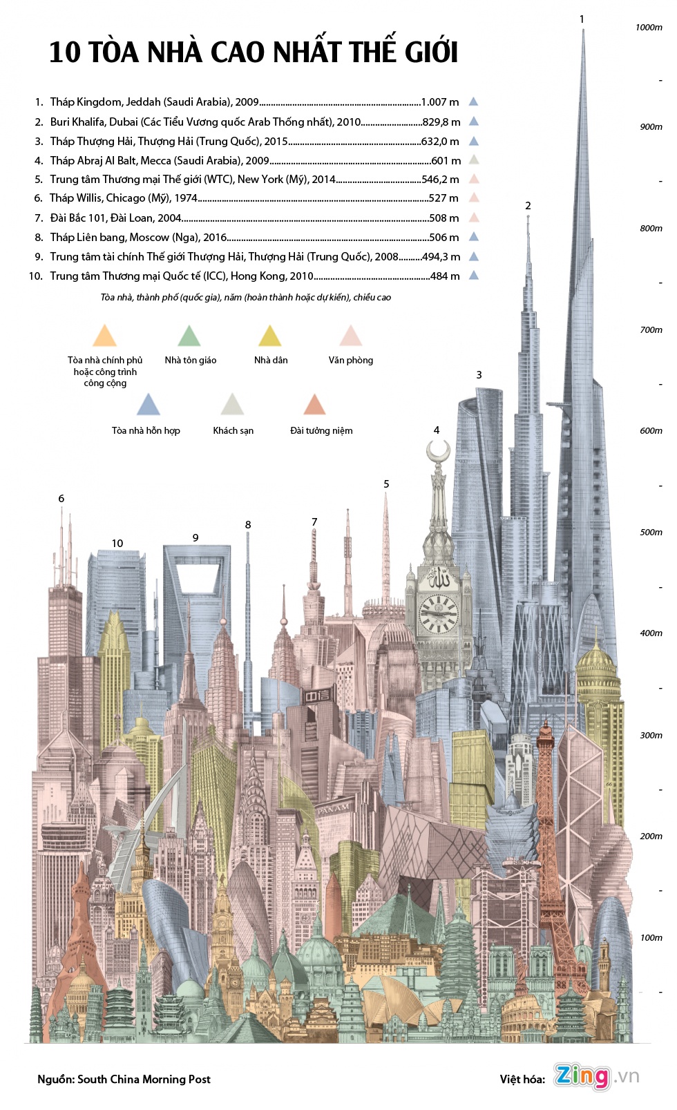 Tháp Kingdom ở của Saudi Arabia cao 1.007 m đã soán ngôi Buri Khalifa của Các Tiểu vương quốc Arab Thống nhất (UAE) để trở thành công trình cao nhất trên thế giới hiện nay.