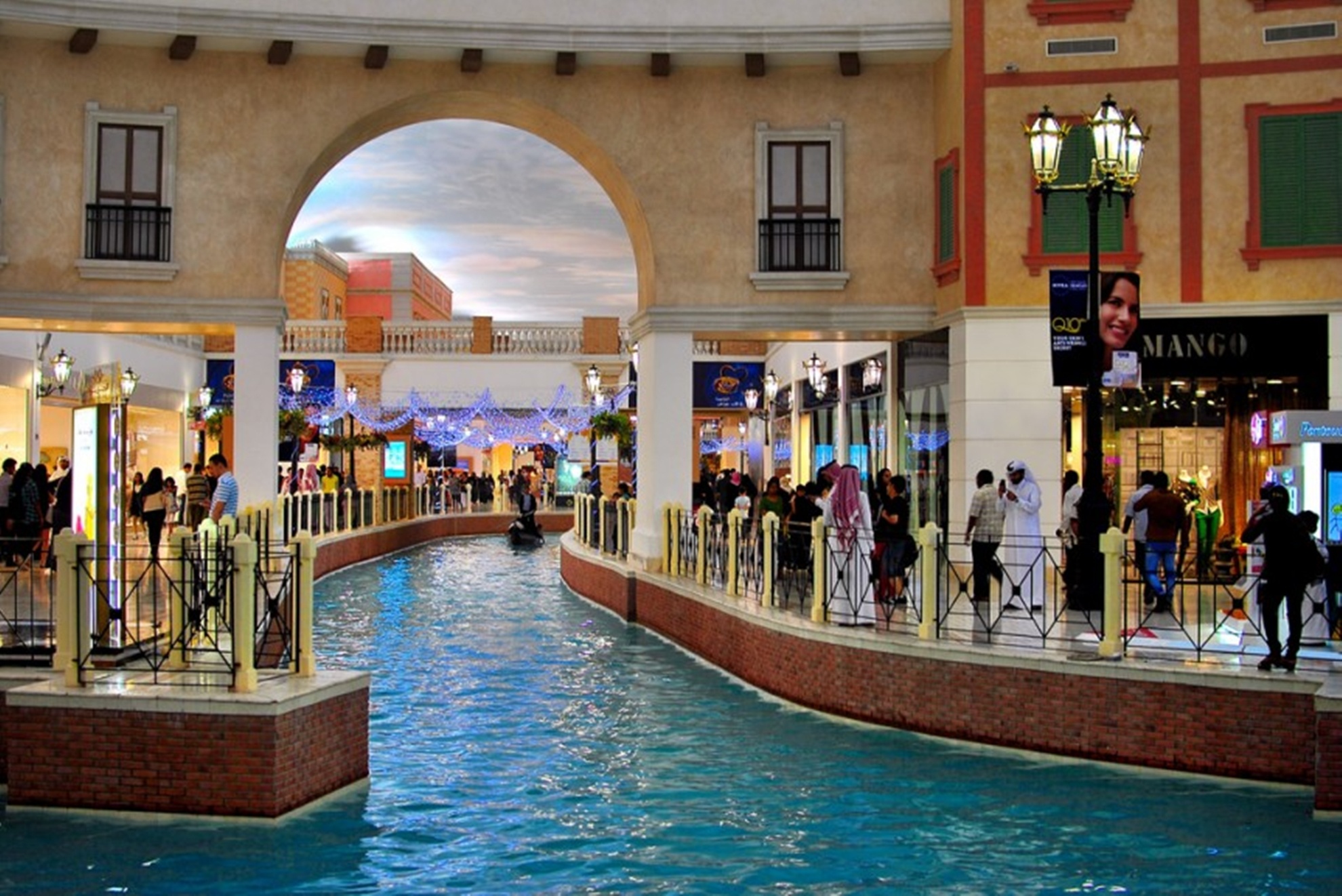 Villagio – Doha, QatarVillagio là một trung tâm mua sắm nữa có thiết kế mô phỏng thành phố Venice của Italy. Tại đây cũng có các kênh đào nhân tạo và thuyền độc mộc cùng các trò giải trí đường phố. Ngoài ra, Villagio còn có các khu vực khác nhau mô phỏng thành phố Venice tại những thời điểm khác nhau trong ngày. Tại đây có công viên giải trí Gondolania với đường tàu lượn trong nhà cũng như ống trượt nước, tàu xoay 360 độ… Du khách cũng có thể thử ném bowling trong bóng tối hay xem phim 4D. Ngoài ra, nơi đây còn có sân trượt băng với các lớp học cho người mới bắt đầu. |