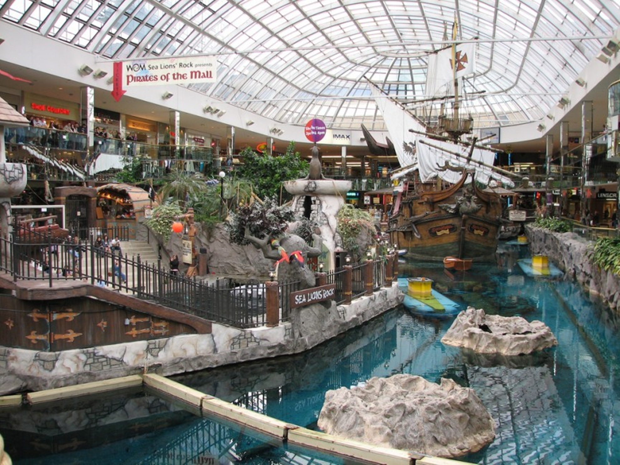 West Edmonton – Edmonton, CanadaWest Edmonton là một trong những trung tâm mua sắm lớn nhất thế giới, có công viên nước trong nhà lớn nhất thế giới với bể tạo sóng khổng lồ, ống trượt cao tới 25 m và khu vực dành cho trẻ em. Không chỉ vậy, West Edmonton còn xây dựng hồ trong nhà với 4 con sư tử biển, một sân trượt băng và sân golf 18 lỗ. Du khách tới đây cũng có thể trải nghiệm cảm giác mới lạ với khu chụp ảnh trong nhà, xem phim hoặc vui chơi tại Trung tâm giải trí Ed’s nơi có sân ném bowling, sân khấu ca nhạc và trò chơi điện tử. |