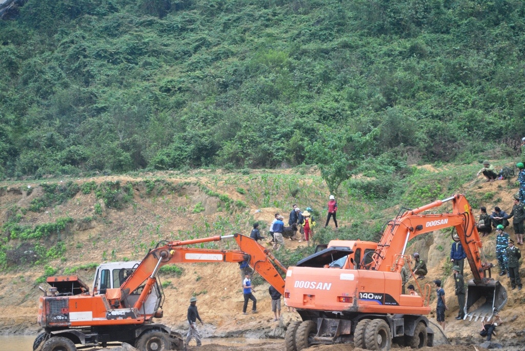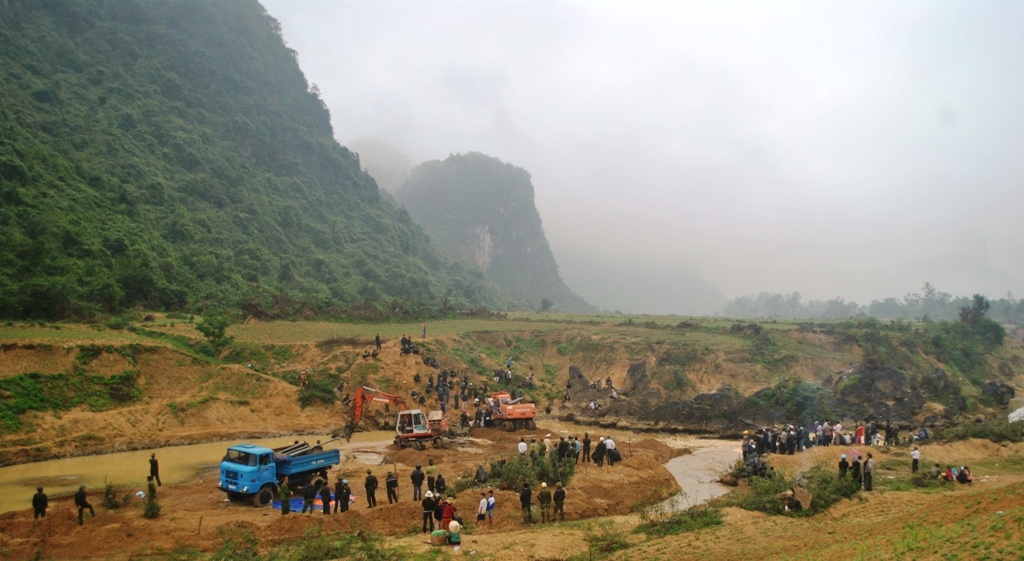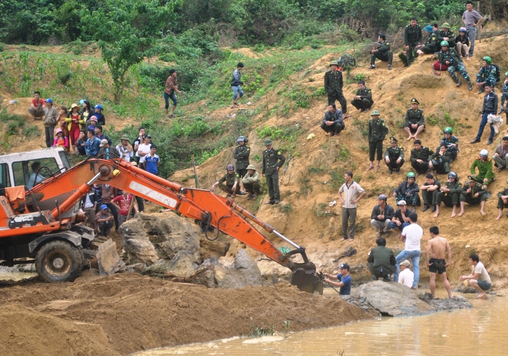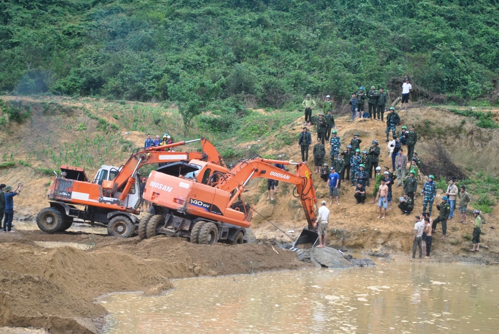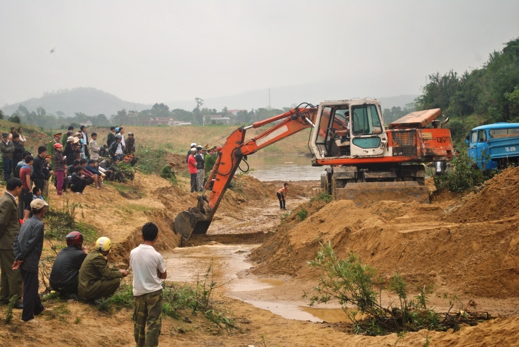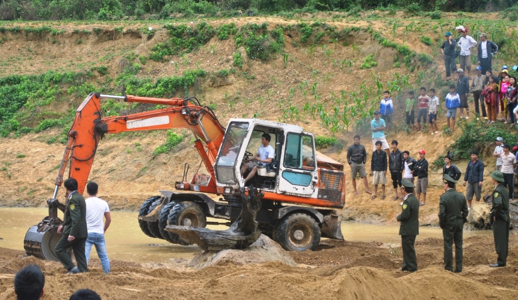Chính quyền địa phương cho xe múc đất để uốn dòng suối. Nhưng sau đó đập đất ngăn dòng bị vỡ, nước dồn về khá mạnh tràn cả khu vực, cuốn trôi số đất đá trước đó đã đắp đập.