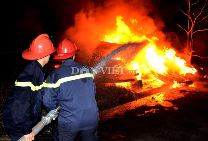 | Sau khoảng 1 giờ, lực lượng cứu hỏa, ngọn lửa mới dần tắt. |